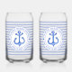 Nautical Anchor Navy Blue Striped Personalised Can Glass