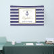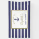 Welcome guests to your nautical-themed baby shower with this jaunty banner, featuring a navy blue anchor and blue and gold text, framed by a gold rectangle set on a background of navy blue and white stripes. Personalize with the name of the mom-to-be in elegant gold handwriting font. See our collections for coordinating nautical baby shower invitations, party supplies, gift ideas, and nursery or boy's bedroom decor.