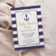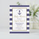 Nautical Anchor Navy Blue Stripes Boy Baby Shower Invitation