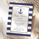 Nautical Anchor Navy Blue Stripes Boy Baby Shower Invitation