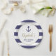 Nautical Anchor Navy Blue Stripes Boy Baby Shower Paper Plate
