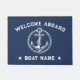 Nautical Anchor Navy Blue Welcome Aboard Boat Name Doormat