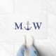 Nautical anchor navy blue white couple monogram initials Doormat rug