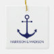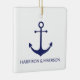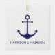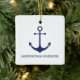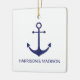 Nautical anchor navy blue and white custom boat name, family name, couple's names or initials Christmas Ceramic Ornament.