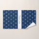 A classic navy blue background decorated with a white coloured anchor pattern. Personalise and add a name, white letters.