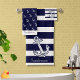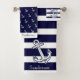 Marine Nautical Anchor Navy Blue White stripes Bath Towel Set Customise by adding a family name and monogram
