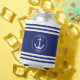 These can coolers with keep your drinks nice and cold on your day at the beach or family barbecue. This design features a white anchor with a circular rope border and three white horizontal stripes at the top and bottom on a navy blue background. Personalise with a name in white typography. The navy blue background may be changed to another colour by customising and selecting another background colour.