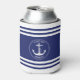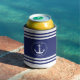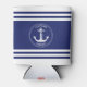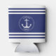 Nautical Anchor Navy Blue White Stripes Monogram Can Cooler
