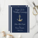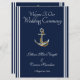 An elegant Nautical Anchor - Wedding Service Program Card, designed in Classic Nautical Navy Blue and White, with Anchor decorations, and white text. The front provides the Bride & Groom's Names and Wedding Date, while the reverse lists your Order of Service and Thank You Message. To personalise simply replace the sample text using our easy template. Be sure to view the entire Nautical Wedding Stationery Collection. Enjoy!