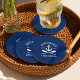 Nautical Anchor Oars Navy Blue Family Lake House Coaster