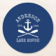 Nautical Anchor Oars Navy Blue Family Lake House Round Paper Coaster