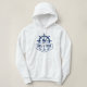 Your Personalised Boat Name or custom Text with Navy Blue Nautical Anchor, Oars, Ships wheel - Helm and Stars on a Women's White Hoodie.