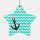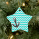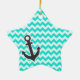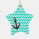 Nautical Anchor on Aqua Colour Chevron Ceramic Tree Decoration