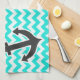 Nautical Anchor on Aqua Colour Chevron Tea Towel