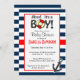 Nautical Anchor on Dark Midnight Blue Stripes Invitation