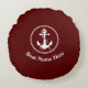 Your Boat Name With Rope & Nautical Anchor On Deep Red Round Pillow Cushion.