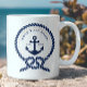 Nautical Anchor & Rope Boat Name Navy Blue & White Coffee Mug