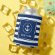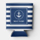 Nautical Anchor Rope Navy Blue Striped Boat Name Can Cooler