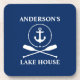Nautical Anchor Rope Oars Navy Blue Family Lake House Coaster
