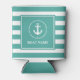 Nautical Striped Anchor Rope Boat Name White Frame Teal Can Cooler