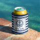 Nautical Anchor Rope Wheel Striped Boat Name Can Cooler