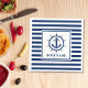 Nautical Anchor Rope Wheel Navy Blue and White Striped Boat Name Paper Napkins