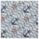 Nautical anchor rudder blue white stripe zigzag fabric