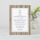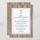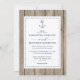 When you are having a beach-inspired wedding and you want a little rustic flare this wedding suite accomplishes both. This invitation features a rustic wood background, a dash line border, and a nautical navy blue anchor.
