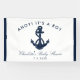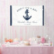 The nautical anchor design adds a timeless aesthetic to this baby shower banner. Featuring your pirate saying, and a navy blue anchor and rope, personalise to create a unique nautical banner for your upcoming baby shower.
