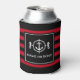 Nautical Anchor and Seahorse with your Personalised Name or Boat Name on a Red and Black striped Can Cooler.