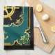 Nautical anchor/ship wheel gilded black/gold/aqua tea towel