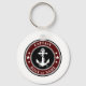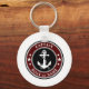A personalized nautical themed keychain with "Captain" (or other desired title or rank) and your name, boat name or other text as needed. This unique design features a custom made vintage boat anchor with rope and stars accented with regal black, deep red and white colors. Makes a great gift for that super captain, skipper or sailor in your life.