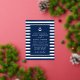 Modern Elegant Nautical Anchor Wedding Invitation. White Anchor with Gold Foil Ring around it. Navy Blue Background. Blue and White Stripes. Gold Foil Frame.