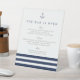 Designed to match our Nautical Mix wedding collection, this elegant coastal style sign is perfect for placing at the bar to share your wine, spirits and beer selections with guests. Personalise the header and and six text fields, adorned with a trio of nautical navy blue stripes and an anchor at the top.