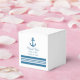 Elegant and classic Nautical Anchor Wedding Favour Boxes with a simple boat anchor and an array of stripes in dark navy blue and white. These nautical beach themed wedding boxes can be easily customised with your wedding details. For more customisation options, click on the Customise It button.