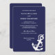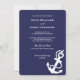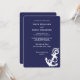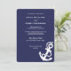 This modern and elegant design features a solid navy blue background and an nautical anchor and rope on the bottom corner. This card is perfect for a wedding with a nautical theme, a destination wedding or a beach wedding.