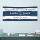 Designed in Nautical Navy with White Stripes and a silver Anchor, this Wedding Reception Banner is easy to personalise with the Bride and Groom's Names and Wedding Date. Simply replace our sample text with your details. It's fast and easy. Can be purchased with hanging accessories for outdoor or indoor use.