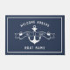 Custom-designed welcome mat featuring nautical theme anchor logo design with personalised boat name.