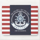 This image features a boat wheel, an anchor on a navy blue, and red striped background.