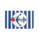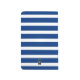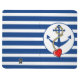 Navy blue boat anchor with rope and a heart. Matching navy blue stripes in background.