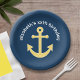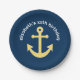 Nautical Anchor with Navy Yellow Chevron Pattern Paper Plate