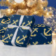 Nautical Anchor with Navy Yellow Chevron Pattern Wrapping Paper