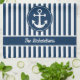 Ahoy there mateys! Perfect for your home, ship, boat or beach house, this nautical design features an anchor and rope over navy blue and white stripes. Personalise it with your family name or phrase.