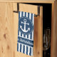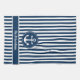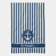 Nautical Anchor with Rope on Navy Blue Stripes Tea Towel
