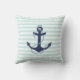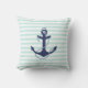 Nautical Aqua & White Stripes Navy Blue Anchor Cushion