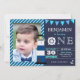 Amaze your guests with this cool nautical birthday party invite featuring a beautiful lighthouse and cute nautical elements with modern typography against a dark blue background. Simply add your event details on this easy-to-use template and adorn this card with your child's favourite photo to make it a one-of-a-kind invitation. Flip the card over to reveal an elegant blue anchor pattern on the back of the card.