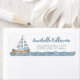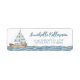 This charming return address label features a playful blue and white sailboat sailing across the ocean, with a gentle wave pattern in the background. The mix of script and serif typography adds a whimsical yet elegant touch, perfect for your baby shower invitations or thank you notes. Ideal for a nautical-themed celebration, it captures the spirit of summer but can be enjoyed year-round.
