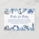 Nautical baby shower book request cards featuring exquisite watercolor depictions of enchanting sea creatures, a splendid boat, a robust anchor, and a "books for baby" message.