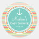 Nautical Baby Shower, Bright Rainbow Stripes Classic Round Sticker