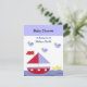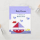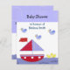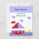 A cute scene on the lake, a red, white and blue sailboat with little yellow ducks in the water and blue birds in the sky. Customize with all of your baby shower information as desired.